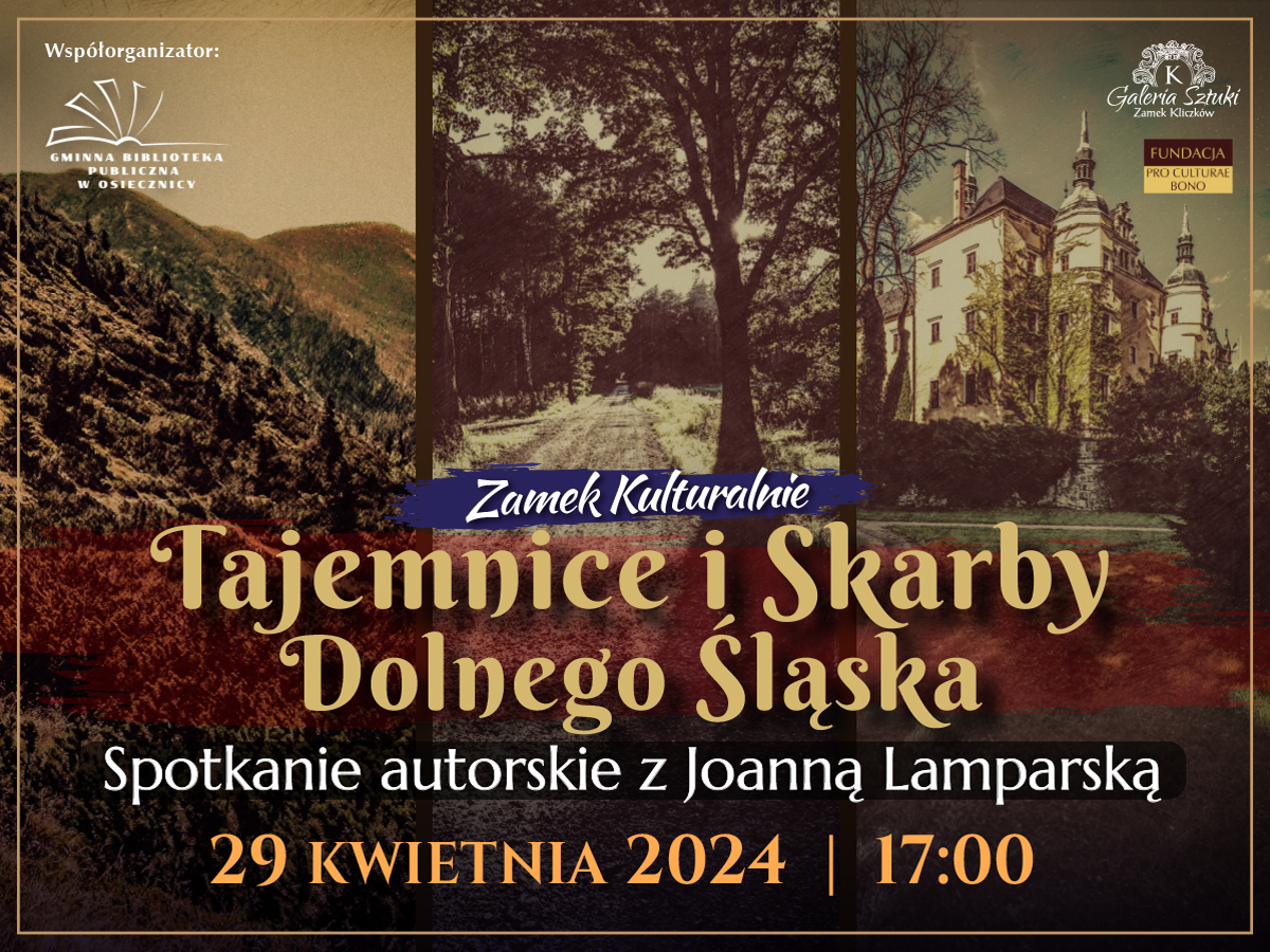 Tajemnice i Skarby Dolnego Śląska – Spotkanie autorskie z Joanną Lamparską – 29.04.2024