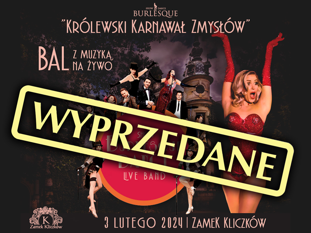 Jedyne w Polsce show muzyczno-taneczne z najlepszą europejską burleską, wokalistami i bandem na żywo zaprasza na bal karnawałowy Królewski Karnawał Zmysłów w Zamku Kliczków. Ekstrawaganckie widowisko muzyczno-taneczne z wykwintną ucztą, burleską, dancingiem i towarzyszącą wszystkiemu muzyką na żywo, w urzekającej zamkowej atmosferze nasyci Państwa wszystkie zmysły. Utalentowana grupa muzyków, pełne wdzięku tancerki, europejska gwiazda burleski i królowa piękności (Lillet L’amour) zagrają majestatyczny, a zarazem porywający program, przeplatający się kulinarną rozkoszą dla podniebienia. Kulminacją wieczoru jest bal z muzyką na żywo do Przebojów Stulecia, a wszystko w Zamkowej atmosferze godnej królów i królowych.