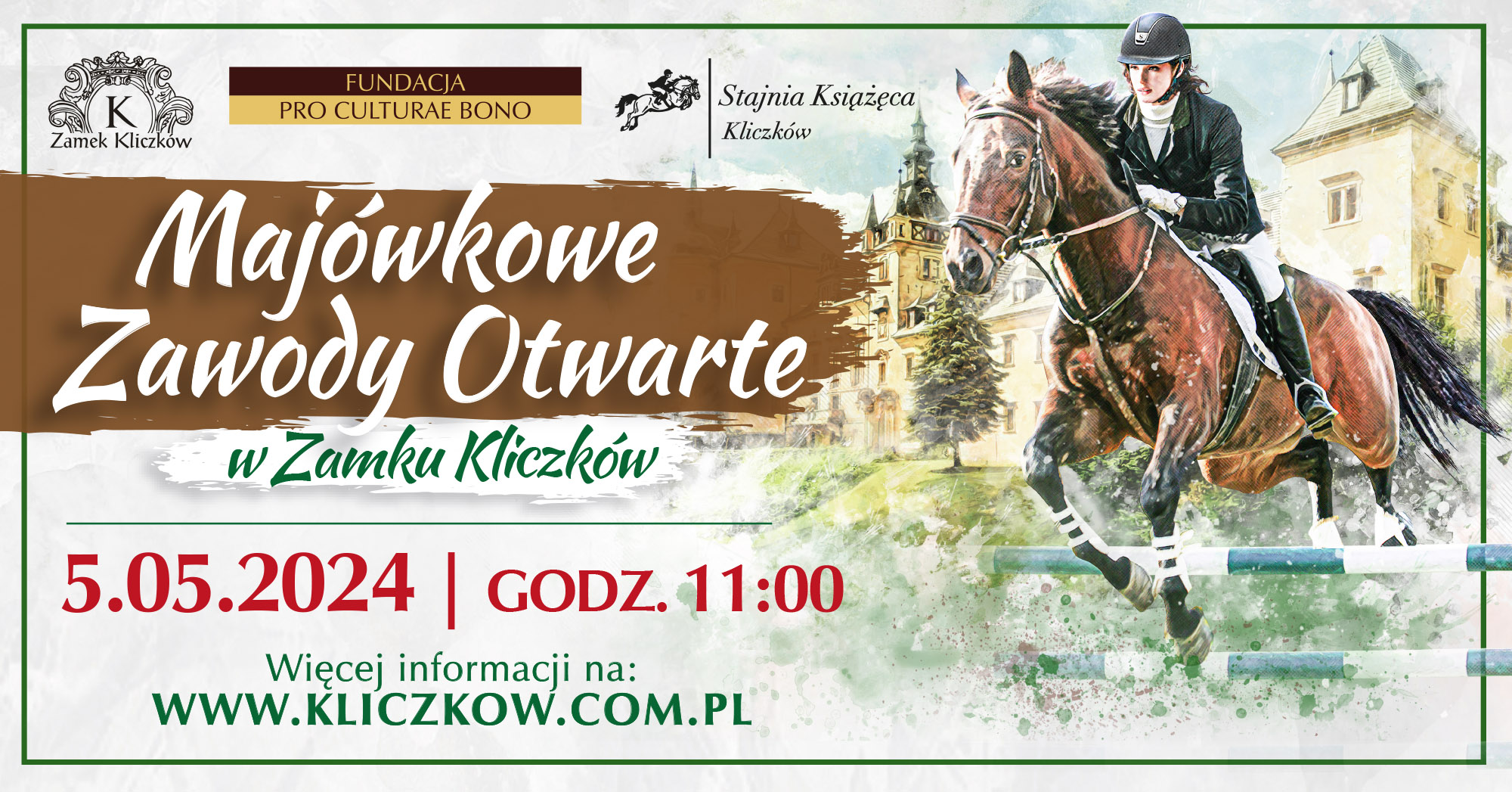 Organizatorem majówkowych parkurów otwartych jest Stajnia Książęca, Stowarzyszenie Klub Jeździecki “Escada” oraz Zamek Kliczków, które wspierają pasje i rozwój członków Szkółki Jeździeckiej w Kliczkowie. Zapraszamy również zawodników z okolicznych stajni, aby spróbowali swoich sił.