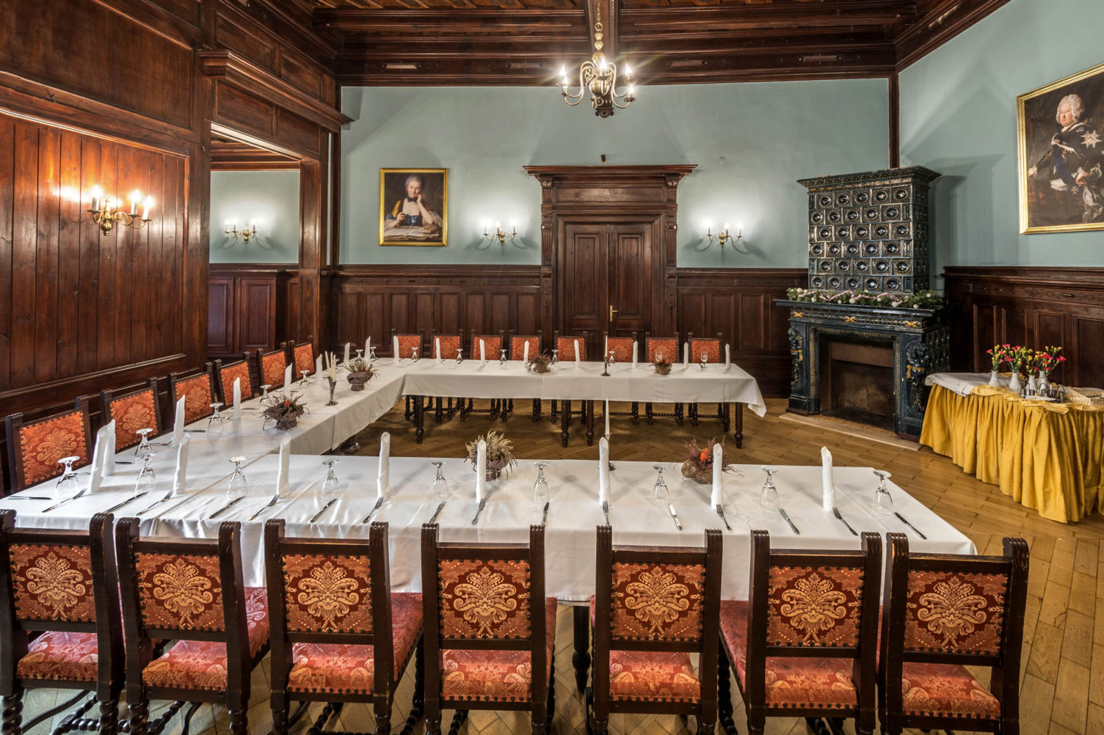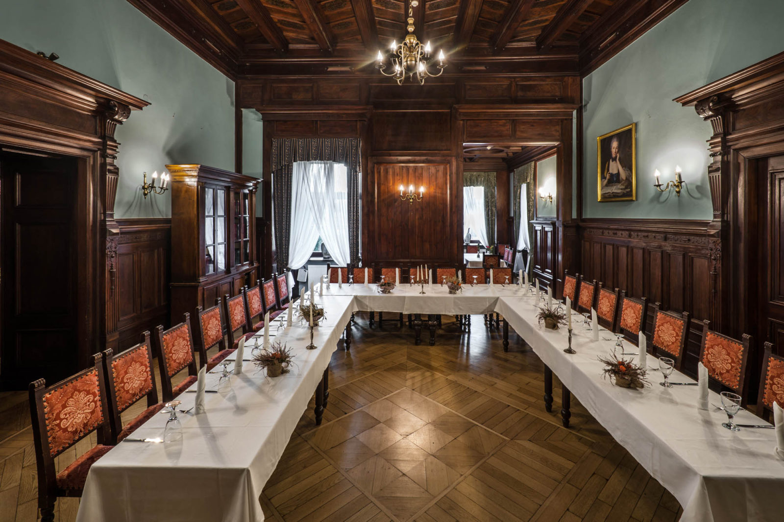 Sala Turkusowa – posiada dodatkową, niezwykłą przestrzeń w postaci wykuszu wieżowego, który może zostać ciekawie wykorzystany jako dodatkowe miejsce ekspozycyjne lub szkoleniowe. Idealne wykorzystanie dla spotkań okolicznościowych oraz szkoleń dla grup do 30 uczestników.