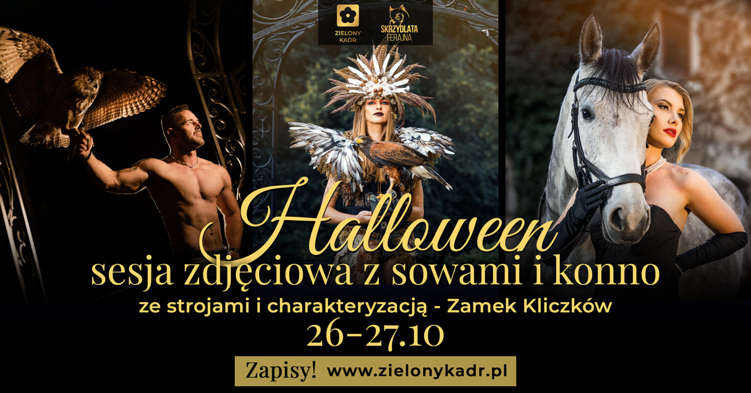 Magiczny maraton fotograficzny na Zamku Kliczków o tematyce Halloween w kadrach Marty Pietrzyk Zielony Kadr. Do tego autorskie stroje Marty w mrocznym i tajemniczym klimacie. Nie zabraknie czerni, piór i naturalistycznych kreacji. Ponadto drapieżne ptaki Skrzydlatej Ferajny jak sowy, kruki i jastrzębie na waszych rękach.