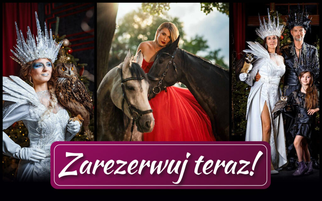 Walentynkowa sesja zdjęciowa w scenerii murów zamkowych, starych drzew, drapieżnych ptaków Skrzydlatej Ferajny, gdzie główną rolę zagra sowa śnieżna. Do tego majestatyczne konie Stajni Książęcej i autorskie stroje naszego studio Zielony Kadr – lodowe królowe, czarni książęta i akcent romantycznej czerwonej sukni. Sami zdecydujcie o jakim charakterze będzie Wasza sesja! Za profesjonalną charakteryzację zadba Atelier Cameleon