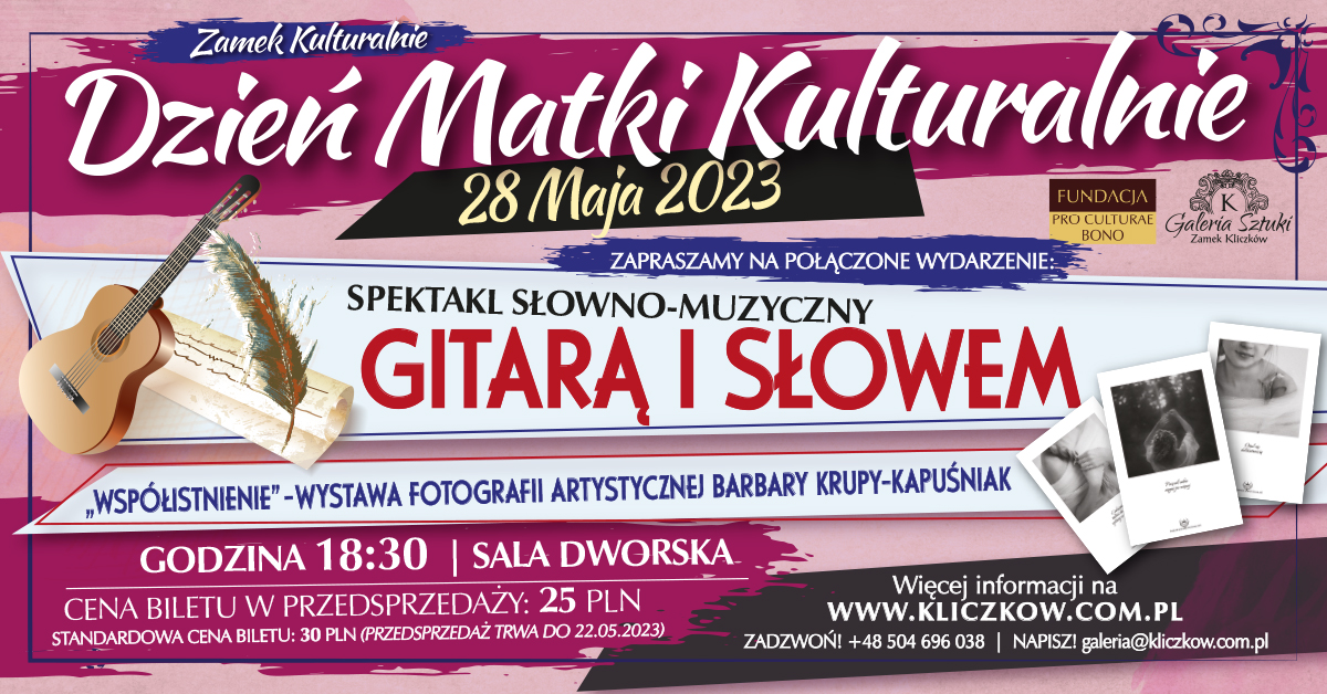 W dniu 28.05.2023 w ramach cyklu Zamek Kliczków Kulturalnie odbędzie się Spektakl Słowno-Muzyczny „Gitarą i Słowem” oraz „WSPÓŁISTNIENIE” –  Wystawa Polaroidów Barbary Krupy – Kapuśniak.